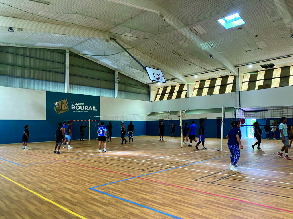 Entraînement de badminton en matches simples ou doubles à la salle polyvalente de Bourail.